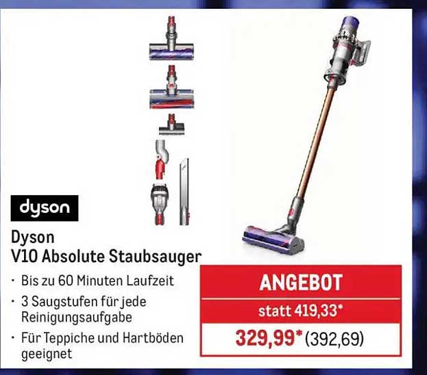 Der Dyson V10 Absolute Staubsauger ist die perfekte Lösung für alle, die ihr Zuhause gründlich und effizient reinigen möchten. Mit seiner herausragenden Saugleistung und durchdachten Technologie wird das Staubsaugen zum Kinderspiel. Dieses Angebot ist eine großartige Gelegenheit, sich diesen leistungsstarken Staubsauger zu einem reduzierten Preis zu sichern.