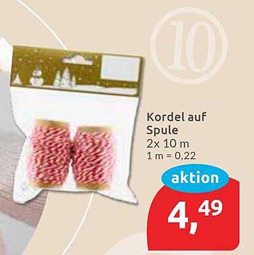 Sehen Sie sich jetzt das Kordel auf Spule 2x 10 m für nur 4,49 € Angebot im Budni Prospekt an. Dieses Angebot ist gültig von 27.10.2025 bis 01.11.2025.