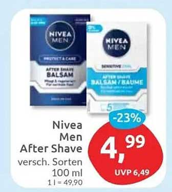 Entdecken Sie das großartige Nivea Men After Shave Balsam Angebot im neuesten Budni Prospekt. Neben diesem Angebot finden Sie noch viele weitere attraktive Rabatte. Sie können das Nivea Men After Shave Balsam einfach online über die Budni Website bestellen oder in einem Geschäft in Ihrer Nähe kaufen.