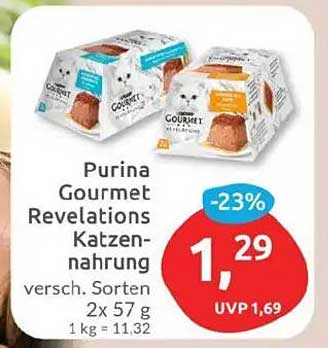 Sehen Sie sich jetzt das Purina Gourmet Revelations Katzennahrung 2x57 g Angebot im Budni Prospekt an. Dieses Angebot ist gültig von 07.04.2025 bis 12.04.2025.