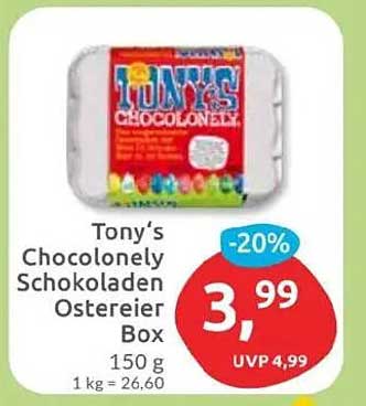 Sehen Sie sich jetzt das Tony’s Chocolonely Schokoladen Ostereier Box Angebot im Budni Prospekt an. Dieses Angebot ist gültig von 31.03.2025 bis 05.04.2025.