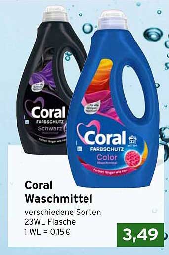 Sehen Sie sich jetzt das Coral Waschmittel verschiedene Sorten 23WL Flasche Angebot im CAP Markt Prospekt an. Dieses Angebot ist gültig von 20.10.2025 bis 25.10.2025.