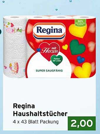 Sehen Sie sich jetzt das Regina Haushaltstücher 4 x 43 Blatt Packung Angebot im CAP Markt Prospekt an. Dieses Angebot ist gültig von 21.04.2025 bis 26.04.2025.