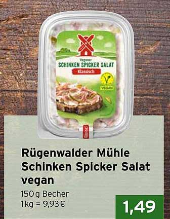 Der Rügenwalder Mühle Schinken Spicker Salat vegan präsentiert sich als hervorragende Option für alle, die Wert auf pflanzliche Ernährung legen. Dieser köstliche Salat ist nicht nur leicht und bekömmlich, sondern auch eine genussvolle Ergänzung zu jedem Gericht. Ideal für ein schnelles Mittagessen, als Snack für zwischendurch oder als Beilage zu Grillgerichten – die Verwendungsmöglichkeiten sind vielfältig. Zudem ist er ab dem 20. Oktober bis zum 25. Oktober zu einem unschlagbaren Preis erhältlich.