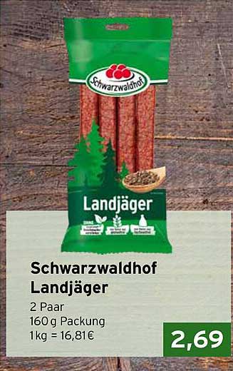 Der aktuelle Preis für die Schwarzwaldhof Landjäger liegt bei nur 2,69 €. Im Vergleich zum Normalpreis ist das ein ausgezeichnetes Angebot, denn der Preis pro Kilogramm liegt bei 16,81 €. Nutzen Sie diese Gelegenheit, um sich einen Vorrat an diesem schmackhaften Snack zu sichern und von den attraktiven Ersparnissen zu profitieren!