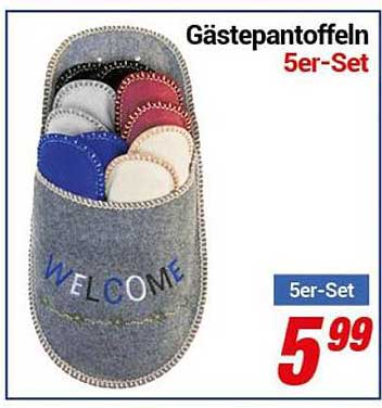 Sehen Sie sich jetzt das Gästepantoffeln 5er-Set Angebot im CENTERSHOP Prospekt an. Dieses Angebot ist gültig von 27.10.2025 bis 31.10.2025.