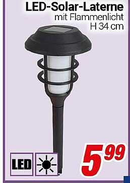 Sehen Sie sich jetzt das LED-Solar-Laterne mit Flammenlicht H 34 cm Angebot im CENTERSHOP Prospekt an. Dieses Angebot ist gültig von 31.03.2025 bis 05.04.2025.