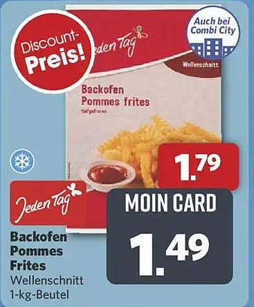 Sehen Sie sich jetzt das Backofen Pommes Frites – Jeden Tag, 1-kg-Beutel Angebot im Combi Prospekt an. Dieses Angebot ist gültig von 31.03.2025 bis 05.04.2025.