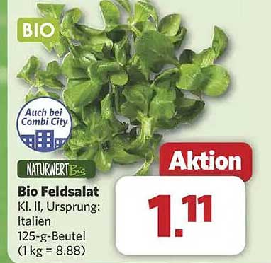 Sehen Sie sich jetzt das Bio Feldsalat Kl. II, Ursprung: Italien 125-g-Beutel Angebot im Combi Prospekt an. Dieses Angebot ist gültig von 31.03.2025 bis 05.04.2025.