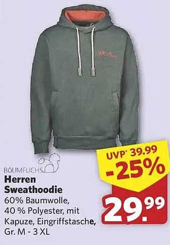 Mit einem Vergleichspreis von 39,99 Euro und einem aktuellen Angebotspreis von nur 29,99 Euro sparen Sie satte 25%. Solch ein Preis-Leistungs-Verhältnis macht diesen Sweathoodie zu einem echten Schnäppchen. Nutzen Sie die Gelegenheit und rüsten Sie Ihre Freizeitgarderobe auf!