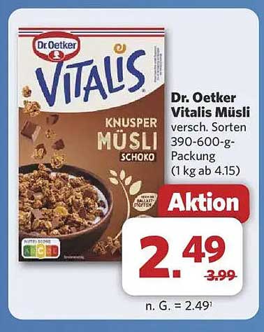Sehen Sie sich jetzt das Dr. Oetker Vitalis Müsli - Schoko Angebot im Combi Prospekt an. Dieses Angebot ist gültig von 20.10.2025 bis 25.10.2025.