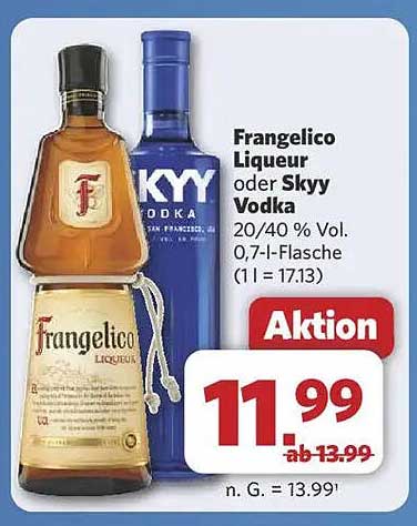 Sehen Sie sich jetzt das Frangelico Liqueur oder Skyy Vodka 0,7-l-Flasche Angebot im Combi Prospekt an. Dieses Angebot ist gültig von 13.10.2025 bis 18.10.2025.
