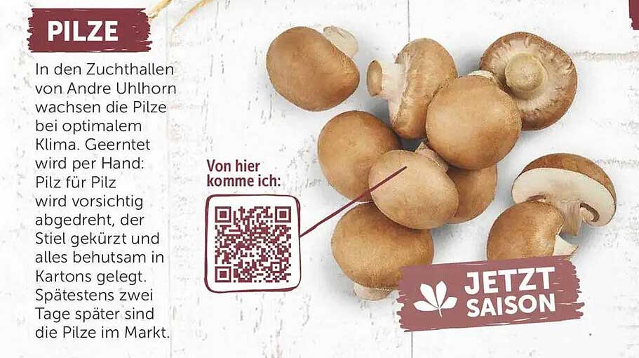 Entdecken Sie die köstlichen Champignons von Andre Uhlhorn, die in optimalen Zuchtbedingungen wachsen. Diese frischen Pilze bieten Ihnen die perfekte Zutat für eine Vielzahl von Gerichten, von herzhaften Pfannengerichten bis hin zu Salaten.