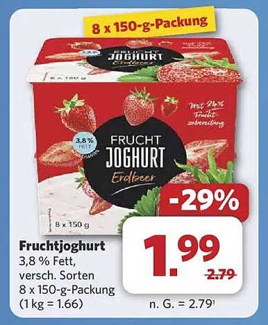 Entdecken Sie den köstlichen Fruchtjoghurt in der verlockenden Erdbeervariante! Diese große Packung mit insgesamt 1,2 kg ist perfekt für den genussvollen Start in den Tag oder als erfrischender Snack zwischendurch. Mit nur 3,8 % Fett ist dieser Joghurt eine ideale Wahl für gesundheitsbewusste Naschkatzen. Das Angebot ist nur für kurze Zeit gültig, also greifen Sie schnell zu!