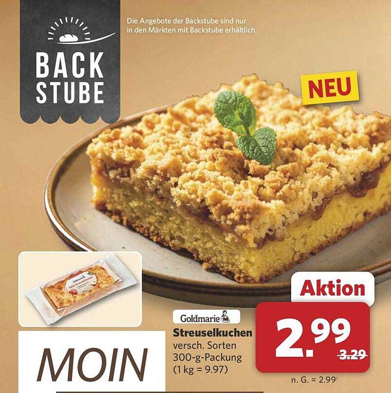 Der reguläre Preis für den Goldmarie Streuselkuchen liegt bei 3,29 €, doch aktuell erhalten Sie ihn hier für nur 2,99 €. Das bedeutet eine Ersparnis von 30 Cent! Nutzen Sie diese Gelegenheit, um sich diesen Leckerbissen zu sichern, während das Angebot gültig ist, vom 03. November bis zum 08. November 2025. Ein unschlagbarer Preis für so viel Genuss!