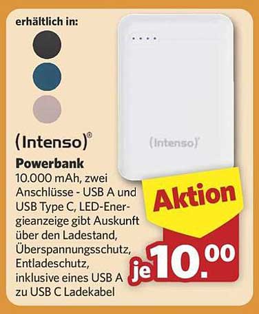 Aktuell ist die Intenso Powerbank zum attraktiven Preis von 10,00 € erhältlich. Dies stellt eine hervorragende Ersparnis dar im Vergleich zu anderen Angeboten auf dem Markt, wo vergleichbare Modelle oftmals teurer sind. Greifen Sie jetzt zu und sichern Sie sich diese praktische Energiequelle zu einem unschlagbaren Preis.