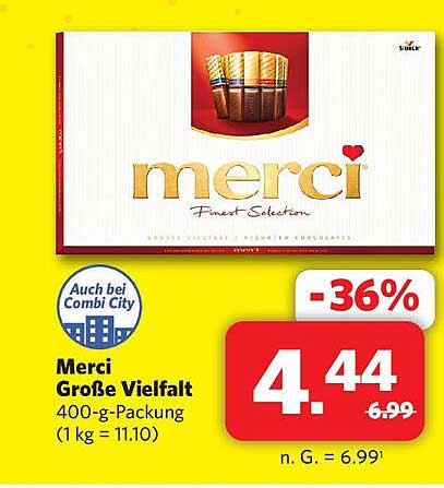 Sehen Sie sich das Merci Finesse Selection Angebot bei Combi an! Dieses fantastische Angebot ist jetzt im neuesten Combi Prospekt verfügbar. Nutzen Sie diese Chance und sparen Sie viel bei Ihrem Einkauf.