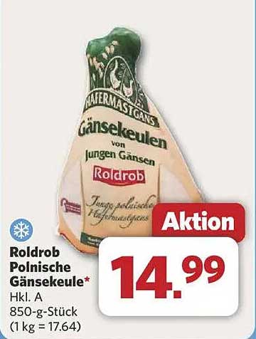 Sehen Sie sich jetzt das Roldrob Polnische Gänsekeule Hkl. A – 850 g Angebot im Combi Prospekt an. Dieses Angebot ist gültig von 20.10.2025 bis 25.10.2025.