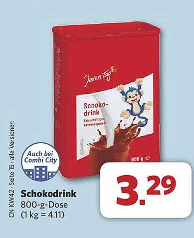 Sehen Sie sich jetzt das Schokodrink Angebot im Combi Prospekt an. Dieses Angebot ist gültig von 14.10.2024 bis 19.10.2024.