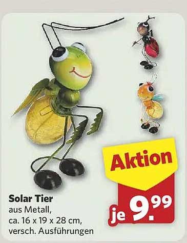 Sehen Sie sich jetzt das Solar Tier aus Metall - Aktion je 9,99 Angebot im Combi Prospekt an. Dieses Angebot ist gültig von 31.03.2025 bis 05.04.2025.