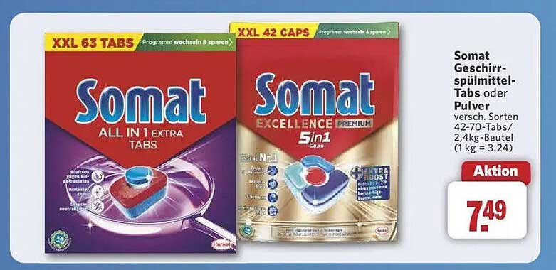 Entdecken Sie die hervorragende Reinigungskraft der Somat Geschirrspültabs und -pulver in verschiedenen Sorten. Diese Produkte bieten eine effektive Lösung für die Geschirrreinigung und sind ein absolutes Muss für jeden Haushalt. Mit dieser Aktion können Sie nicht nur Zeit sparen, sondern auch sicherstellen, dass Ihr Geschirr strahlend sauber und hygienisch ist. Jetzt ist der perfekte Zeitpunkt, um auf erstklassige Produkte zuzugreifen, die Ihr Geschirr glänzen lassen.