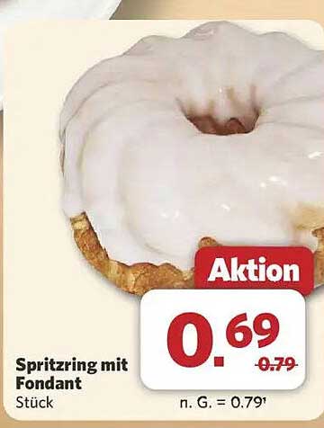 Zum Aktionspreis von nur 0,69 € (statt 0,79 €) ist der Spritzring mit Fondant eine unschlagbare Wahl. Sie sparen 0,10 €, was ihn zu einem hervorragenden Angebot macht. Nutzen Sie die Gelegenheit, sich dieses schmackhafte Stück zu sichern, bevor die Aktion endet!