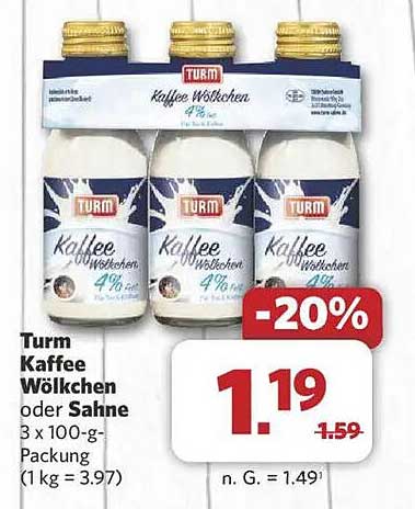 Sehen Sie sich jetzt das Turm Kaffee Wölkchen oder Sahne 3 x 100-g-Packung Angebot im Combi Prospekt an. Dieses Angebot ist gültig von 13.10.2025 bis 18.10.2025.