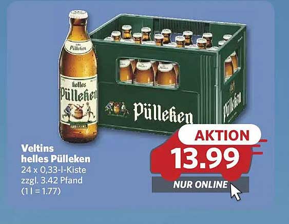 Der Aktionspreis von nur 13,99 Euro macht dieses Angebot besonders attraktiv, wenn man den Vergleich zum regulären Preis zieht. Normalerweise liegt der Preis für diese Kiste höher, sodass du hier einiges sparen kannst. Nutze die Gelegenheit und sichere dir die Kiste echtes Veltins helles Püllken zu einem unschlagbaren Preis!