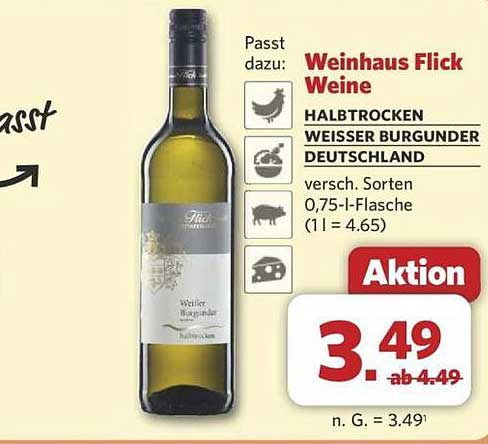 Sehen Sie sich jetzt das Weinhaus Flick Weine - Halbtrocken Weisser Burgunder Deutschland Angebot im Combi Prospekt an. Dieses Angebot ist gültig von 22.09.2025 bis 27.09.2025.