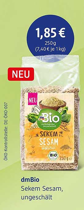 Sehen Sie sich jetzt das dmBio Sekem Sesam, ungeschält Angebot im dm Prospekt an. Dieses Angebot ist gültig von 03.12.2024 bis 31.12.2024.