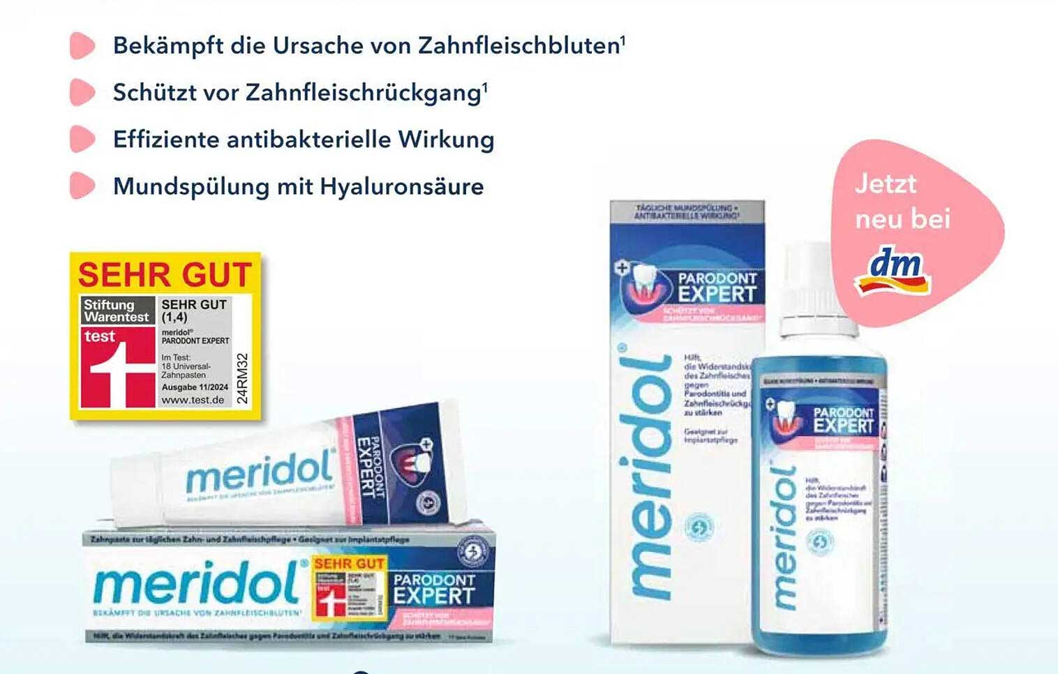 Entdecken Sie das großartige Meridol Parodont Expert Angebot im neuesten dm Prospekt. Neben diesem Angebot finden Sie noch viele weitere attraktive Rabatte. Sie können das Meridol Parodont Expert einfach online über die dm Website bestellen oder in einem Geschäft in Ihrer Nähe kaufen.