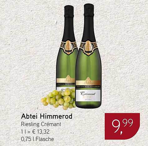 Sehen Sie sich jetzt das Abtei Himmerod Riesling Crémant 0,75 l Flasche Angebot im Dornseifer Prospekt an. Dieses Angebot ist gültig von 20.10.2025 bis 25.10.2025.