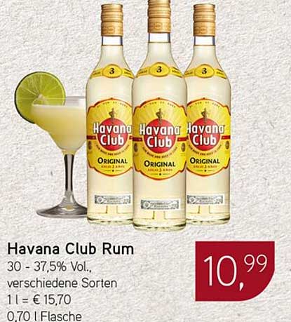 Aktuell können Sie Havana Club Rum für nur 10,99 Euro statt des regulären Preises von 15,70 Euro erwerben. Dies bedeutet für Sie eine Ersparnis, die jeden Cocktailabend noch angenehmer gestaltet. Genießen Sie die herrlichen Aromen ohne ein Loch in Ihren Geldbeutel zu reißen!