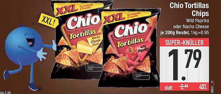 Sehen Sie sich jetzt das Chio Tortillas Chips - Wild Paprika oder Nacho Cheese 200g Beutel Angebot im E-Center Prospekt an. Dieses Angebot ist gültig von 27.07.2025 bis 02.08.2025.