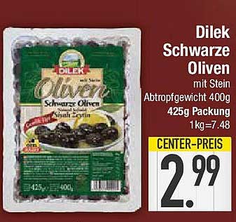 Sehen Sie sich jetzt das Dilek Schwarze Oliven mit Stein 400g Angebot im E-Center Prospekt an. Dieses Angebot ist gültig von 23.03.2025 bis 29.03.2025.