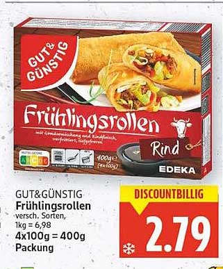 Mit einem Preis von nur 2,79 € für die 400g-Packung ist dieses Angebot unschlagbar. Im Vergleich zum Normalpreis von 6,98 € sparen Sie hier über 60%! Eine ideale Möglichkeit, um hochwertige Snacks zu einem absolut fairen Preis zu genießen. Profitieren Sie von dieser Ersparnis und genießen Sie den köstlichen Geschmack der Frühlingsrollen!