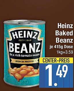 Sehen Sie sich jetzt das Heinz Baked Beanz in der 415g Dose Angebot im E-Center Prospekt an. Dieses Angebot ist gültig von 26.10.2025 bis 01.11.2025.