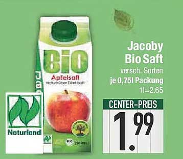 Sehen Sie sich jetzt das Jacoby Bio Saft - Verschiedene Sorten Angebot im E-Center Prospekt an. Dieses Angebot ist gültig von 02.11.2025 bis 08.11.2025.