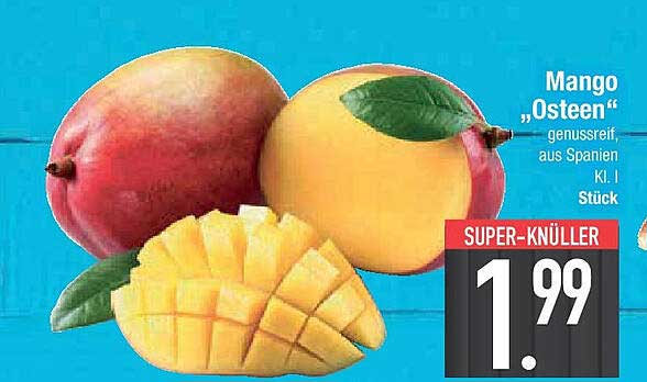 Mit einem Preis von nur 1,99 € pro Stück ist die Mango „Osteen“ ein echtes Schnäppchen. Im Vergleich zu gängigen Preisen in anderen Geschäften sparen Sie hier erheblich. Nutzen Sie die Gelegenheit, diese köstliche Frucht zu einem unschlagbaren Preis zu genießen. Eine hochwertige Mango zu erwerben, war noch nie so günstig!