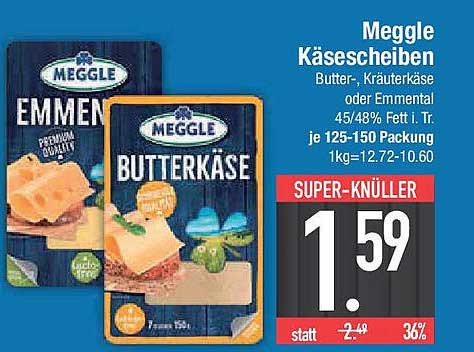 Möchten Sie sofort informiert werden, sobald das Meggle Käse Scheiben im Angebot ist? Melden Sie sich für unsere Angebots-Benachrichtigungen an. So erhalten Sie eine Benachrichtigung, sobald das Produkt zu einem günstigen Preis verfügbar ist.