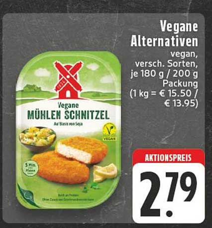 Sehen Sie sich jetzt das Vegane Mühlen Schnitzel - Verschiedene Sorten Angebot im E-Center Prospekt an. Dieses Angebot ist gültig von 15.09.2025 bis 20.09.2025.