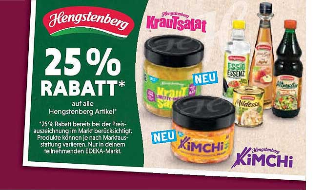 Sehen Sie sich jetzt das 25% Rabatt auf alle Hengstenberg Artikel Angebot im Edeka Prospekt an. Dieses Angebot ist gültig von 29.06.2025 bis 05.07.2025.