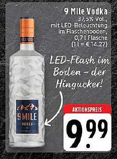 Sehen Sie sich jetzt das 9 Mile Vodka 0,7 L mit LED-Beleuchtung im Flaschenboden Angebot im Edeka Prospekt an. Dieses Angebot ist gültig von 21.07.2025 bis 26.07.2025.
