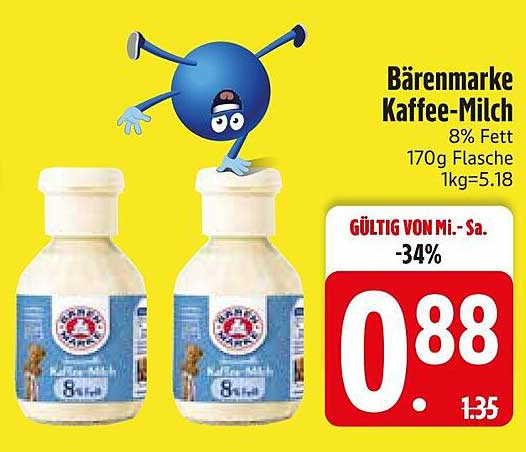 Sehen Sie sich jetzt das Bärenmarke Kaffee-Milch 8% Fett 170g Flasche Angebot im Edeka Prospekt an. Dieses Angebot ist gültig von 28.04.2025 bis 03.05.2025.