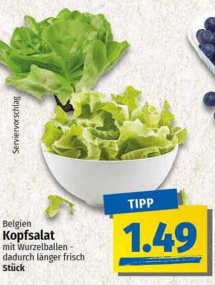 Mit einem Preis von nur 1,49 € pro Stück ist dieser Kopfsalat ein echtes Schnäppchen. Im Vergleich zu anderen Salatangeboten in Supermärkten, die häufig teurer sind, offeriert Edeka hier ein wirklich attraktives Preis-Leistungs-Verhältnis. Profitieren Sie von dieser Ersparnis und genießen Sie frische Salate ohne schlechtes Gewissen!