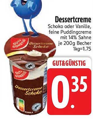 Sehen Sie sich jetzt das Dessertcreme Schoko oder Vanille – Feine Puddingcreme mit 14% Sahne Angebot im Edeka Prospekt an. Dieses Angebot ist gültig von 16.06.2025 bis 21.06.2025.