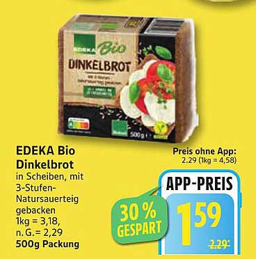 Aktuell erhalten Sie das EDEKA Bio Dinkelbrot für nur 1,59 €. Im Vergleich zum regulären Preis von 2,29 € bedeutet dies eine Ersparnis von 30%! Dieses Angebot ist nicht nur eine hervorragende Möglichkeit, Geld zu sparen, sondern auch eine Chance, gesunde Ernährung in Ihren Alltag zu integrieren. Verpassen Sie nicht die Gelegenheit, dieses schmackhafte Bio-Brot zu einem unschlagbaren Preis zu genießen.