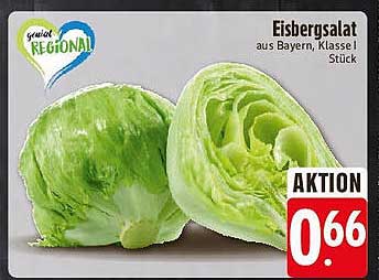 Sehen Sie sich jetzt das Eisbergsalat aus Bayern, Klasse I, Stück Angebot im Edeka Prospekt an. Dieses Angebot ist gültig von 21.05.2025 bis 24.05.2025.