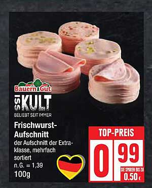 Sehen Sie sich das Frischwurst-Aufschnitt Angebot bei Edeka an! Dieses fantastische Angebot ist jetzt im neuesten Edeka Prospekt verfügbar. Nutzen Sie diese Chance und sparen Sie viel bei Ihrem Einkauf.