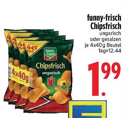 Hier erwartet Sie ein unschlagbares Angebot: Die beliebten funny-frisch Chipsfrisch in der Varianten ungarisch oder gesalzen. Diese knusprigen Snack-Klassiker sind nicht nur perfekt für die nächste Feier, sondern auch ein idealer Begleiter für gemütliche Fernsehabende. Für nur 1,99 Euro pro Packung, bestehend aus vier 40g Beuteln, kommt sowohl Geschmack als auch Qualität zusammen.